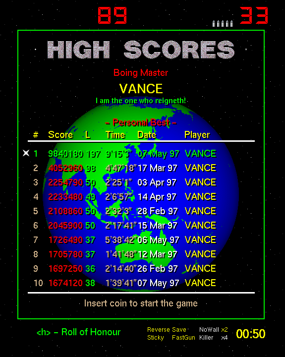 Vance's Xboing Personal Best May 7 1997